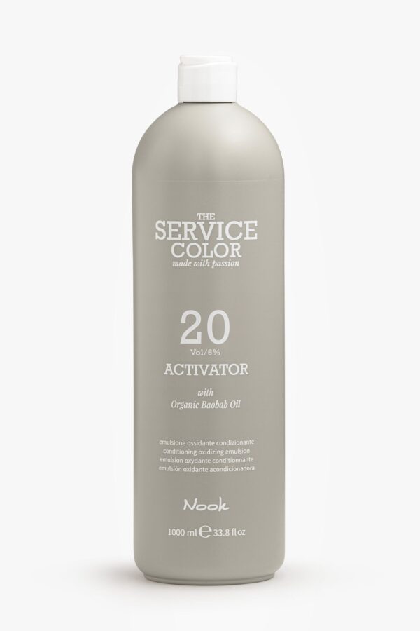 The Service Color Activator è una speciale crema ossidante, altamente stabilizzata, formulata con Olio di Baobab da coltivazione biologica e da innovativi agenti cationici ad elevata azione condizionante e trattante, che assicura in ogni servizio tecnico di colorazione e decolorazione, la massima delicatezza e protezione di cute e capelli.