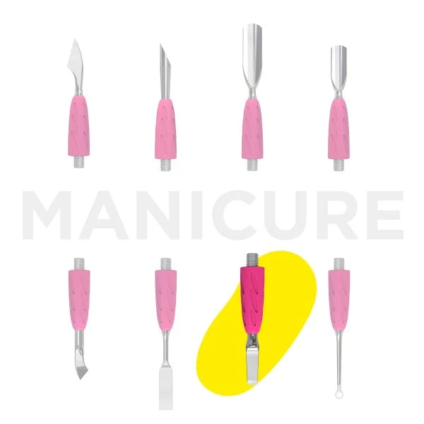 - La parte operativa "pala dritta" è ideale per trattare i seni ungueali e sollevare la cuticola spessa e fortemente aderente durante la manicure e la pedicure.